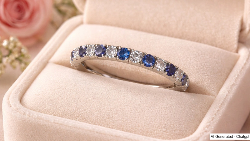 Half Eternity Diamond And Blue Sapphire Wedding Ring