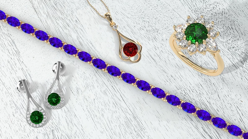 Play around different colored gemstones such as ruby and diamond, emerald and garnet, sapphire and amethyst and create your own vibe.