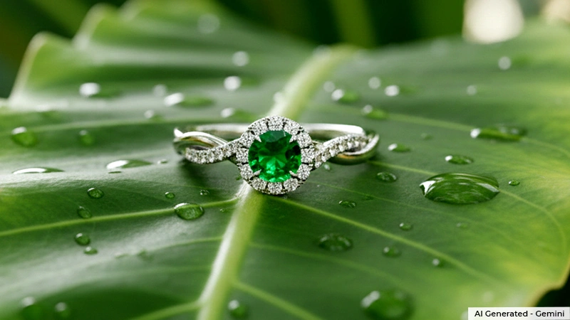 A halo of diamonds with a pave twist band featuring an emerald stone from the Unity Collection represents love in motion. The intertwining band symbolizes paths crossing and hearts entwining forever. Featuring a round-shaped 0.40-carat emerald stone at the center flanked by pave set diamonds, this ring adds a romantic flair to your jewelry box. Buy this ring at $2,062 and make your loved one feel special with a romantic gesture.