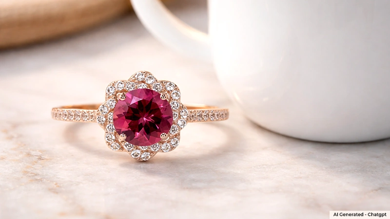Inspired by blooming romance, this pink tourmaline floral halo ring from our Unity Collection is elegant, feminine and royal. The diamond studded flower-like design represents growth and renewal. While the center 0.55 carat pink tourmaline adds brilliance and a pop of color to the overall ring. Set in a playful 14k rose gold setting, buy this floral ring at $1,678 and elevate your every look.