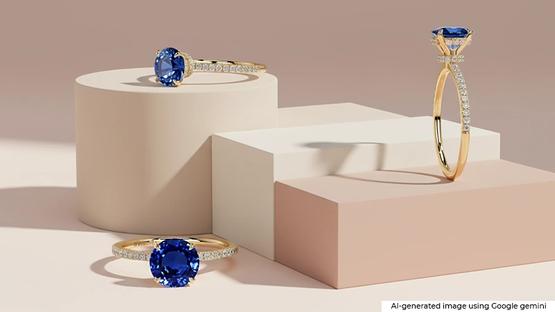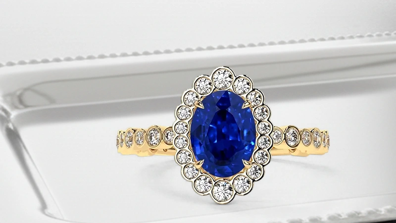 Yes. You can choose each design element of your halo ring from the center stone to diamonds. Usually a halo is made of diamonds but you can create it the other way round. For instance, keep a diamond in the center and blue sapphires around it. The ‘make your own’ feature at GemsNY lets you do that in three simple steps.