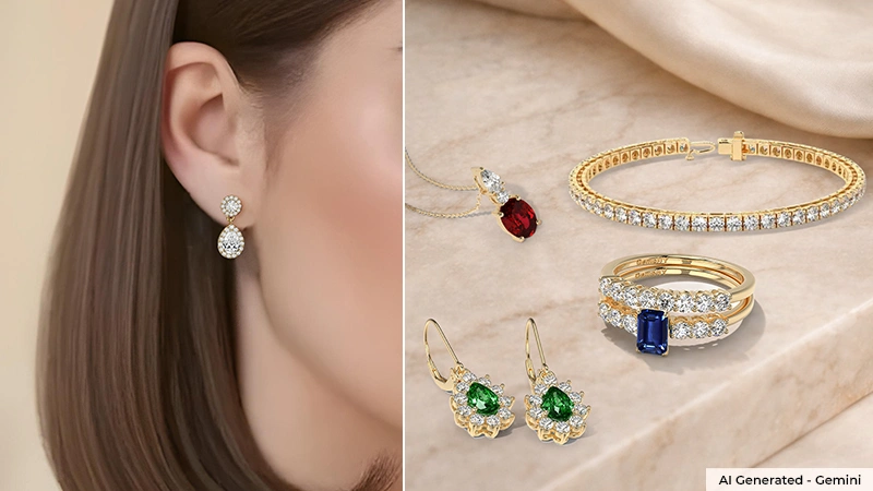 Drop earrings, especially those prettified with diamonds, have that perfect mix of glamor and elegance. They’re not too loud, but they definitely make a statement. Plus, they swing and catch the light.