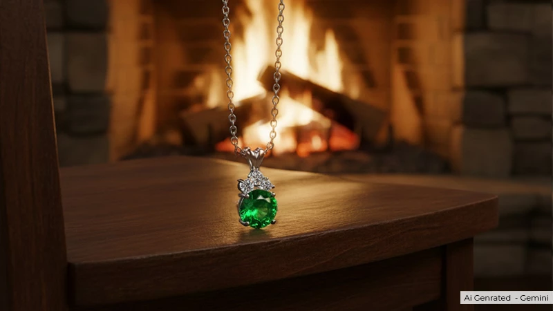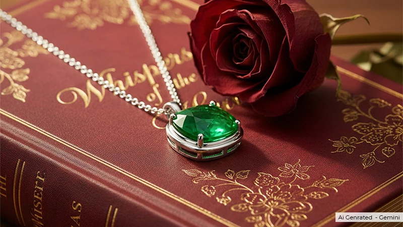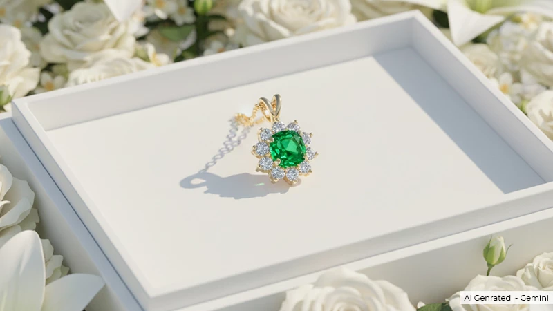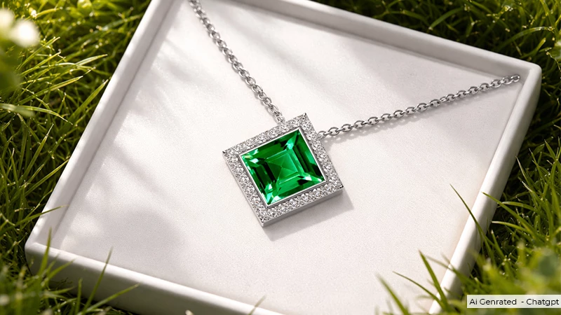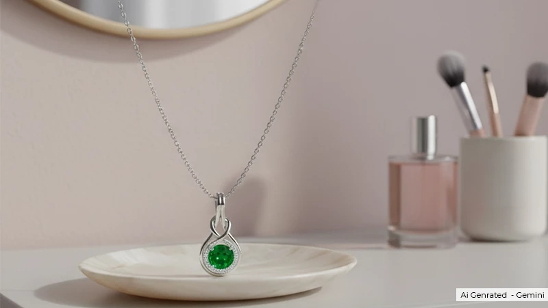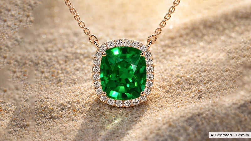 There is nothing more classic than a natural emerald solitaire pendant. This pendant features a single natural emerald stone, a solitare, that offers a pillow-like shape of a cushion with vibrant, deep green hues. It gives a vintage vibe along with classic elegance.