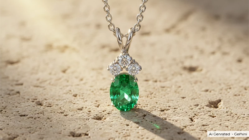 5. Natural Emerald Oval Cut Pendant with Three Round Diamonds