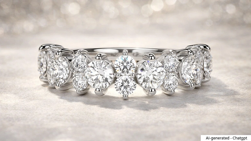 A half eternity band studded with diamonds is the perfect example of women’s jewelry that is subtle yet unforgettable. This style strikes the perfect balance between fashion and comfort